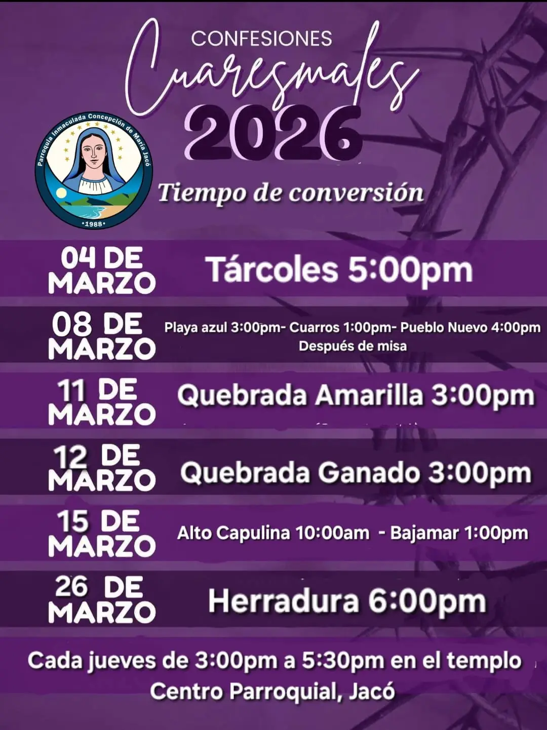 Ver horario completo por comunidad Todas las 13 filiales de la parroquia